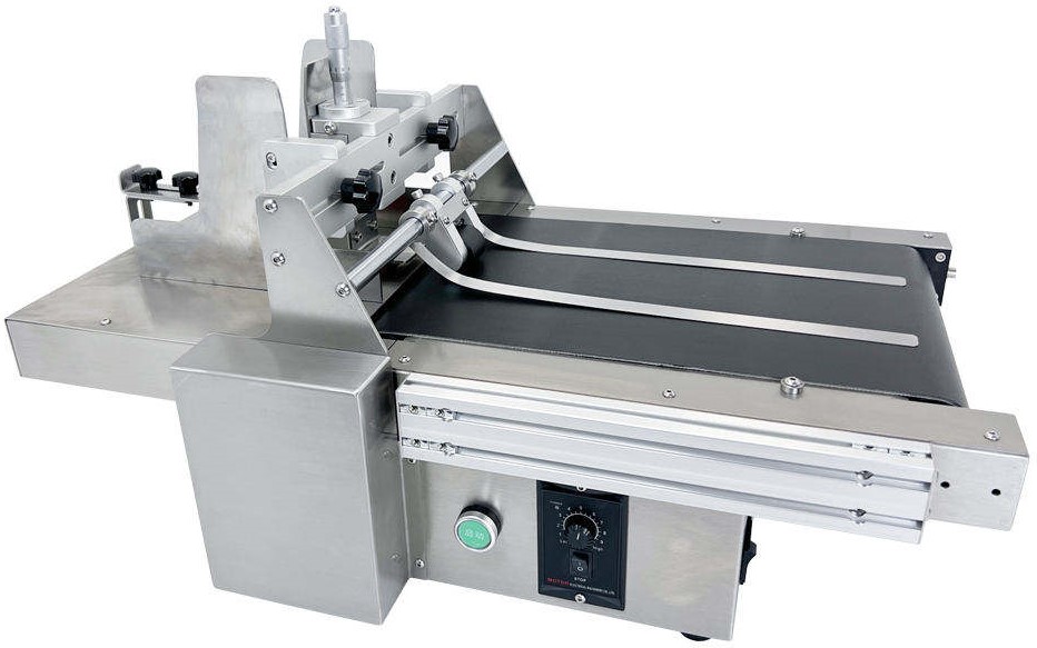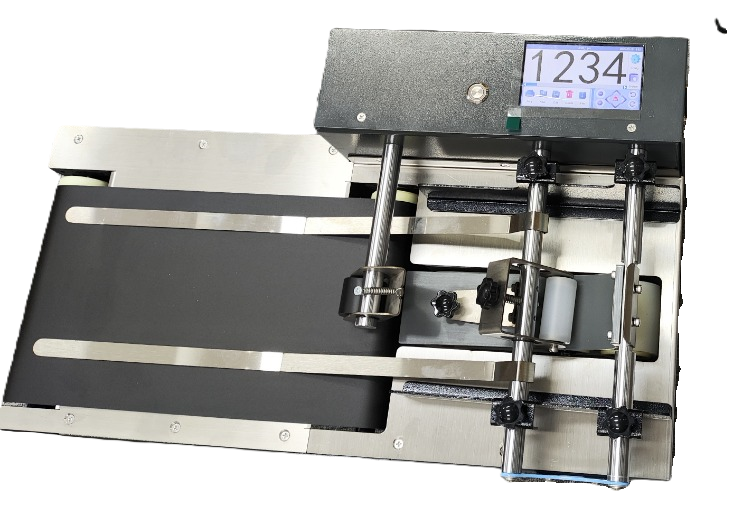 AIMS brand Compact Continuous flat belt Compact variable speed conveyor Model SCS – 250S (250 x 610mm) with PVC conveyor belt of size 200 mm width X 610 mm long & 70 mm height Stainless Steel machine, having a Variable speed 1 to 15 meters / min. Used to automatically separate stacked packaging bags or card products into single pages, custom-made universal paging machine, effectively reducing friction paging sound and improving paging efficiency, equipped with a scale thickness fine-tuning knob, convenient for changing products of different thicknesses, the whole machine is made of stainless steel, and the surface is finely brushed.It is suitably designed to provide proper conveyance to objects for proper Ink Jet Printing (Model IJP- P2128 / T360-O / MX1-A).