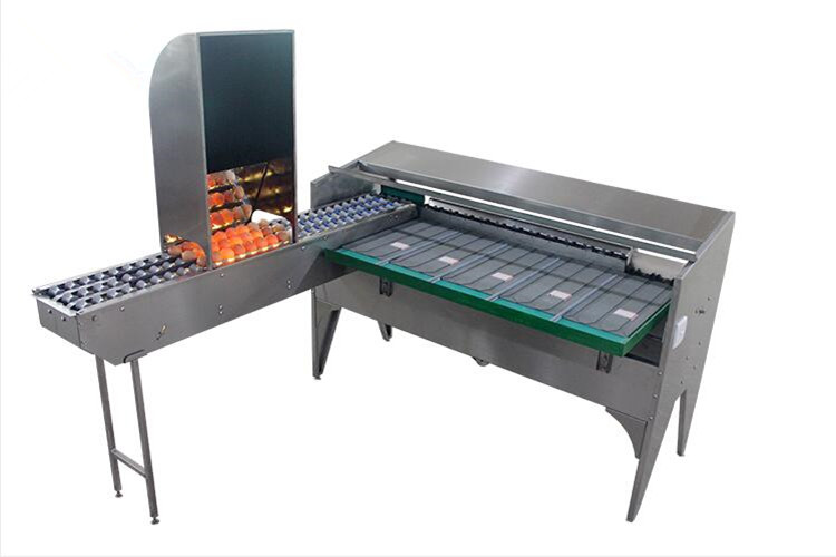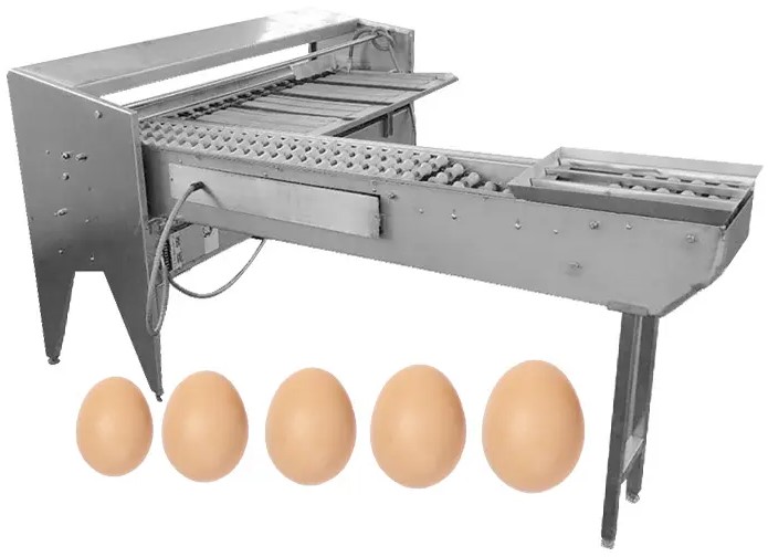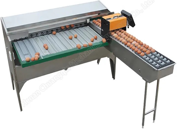 Egg Sorting / Grading Machine Model EGM–361, is an automated equipment used to inspect the quality of the inside and outer shell of eggs and classify them by weight. It is suitable for egg producers, egg product processing factory and food processing factory. According to the egg processing needs of different industries, we have designed a variety of egg grading machines to help you improve production efficiency. It can classify eggs into up to 5 or 7 grades with an accuracy of ±1 gram. Egg grader can be used together with an accumulator, candling detection device, printer, or egg washer. The optional vacuum egg lifter can load 30 eggs on the accumulator at one time to improve work efficiency. The main constitutes include eggs conveying belts, eggs groove, eggs grader and filtrating floor. It is suitable for various kinds of eggs like hen eggs, duck eggs, goose eggs or any other eggs. It’s very fit for egg processing factory, poultry eggs farming market or egg producing company. The conveying part is conveyed in two rows, hen eggs or duck eggs can be placed horizontally. A light bulb can be installed in the middle of the conveyor belt to detect the quality of eggs through light transmission. Workers put the eggs onto the roller belt manually.