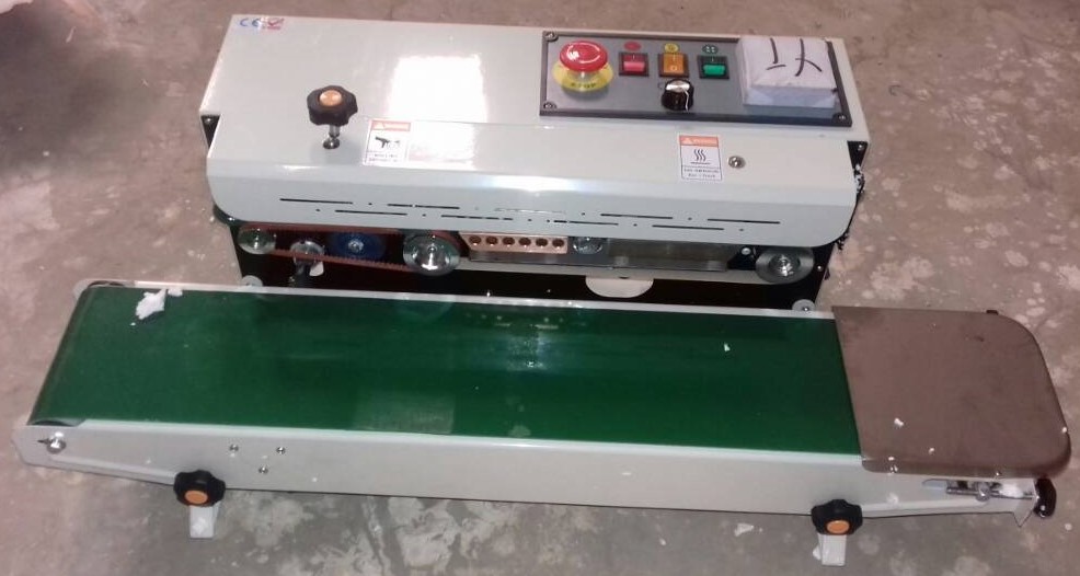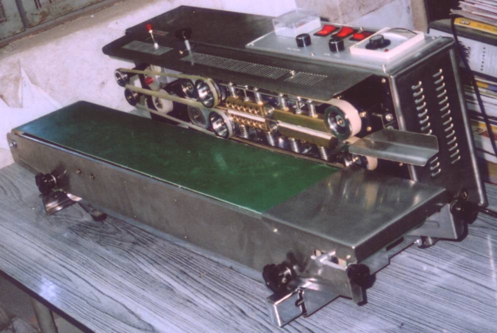 Horizontal Band Sealing Machine Model BSM-150-H for sealing small bags or filled pouches of tea, snacks, etc. of all materials. It has a Variable speed conveyor for carrying the filled pouches in the Roller Bands that heat seal the pouch, move them forward & release them at the other end. No operator handling is required, thus making the sealing process very easy & fast. Embossing of Exp. Dt., etc. also takes place simultaneously if required. This sealer is suitable for Tea / Coffee pouches, snacks, powders, pharmaceuticals, chemicals, seeds, spices, etc.