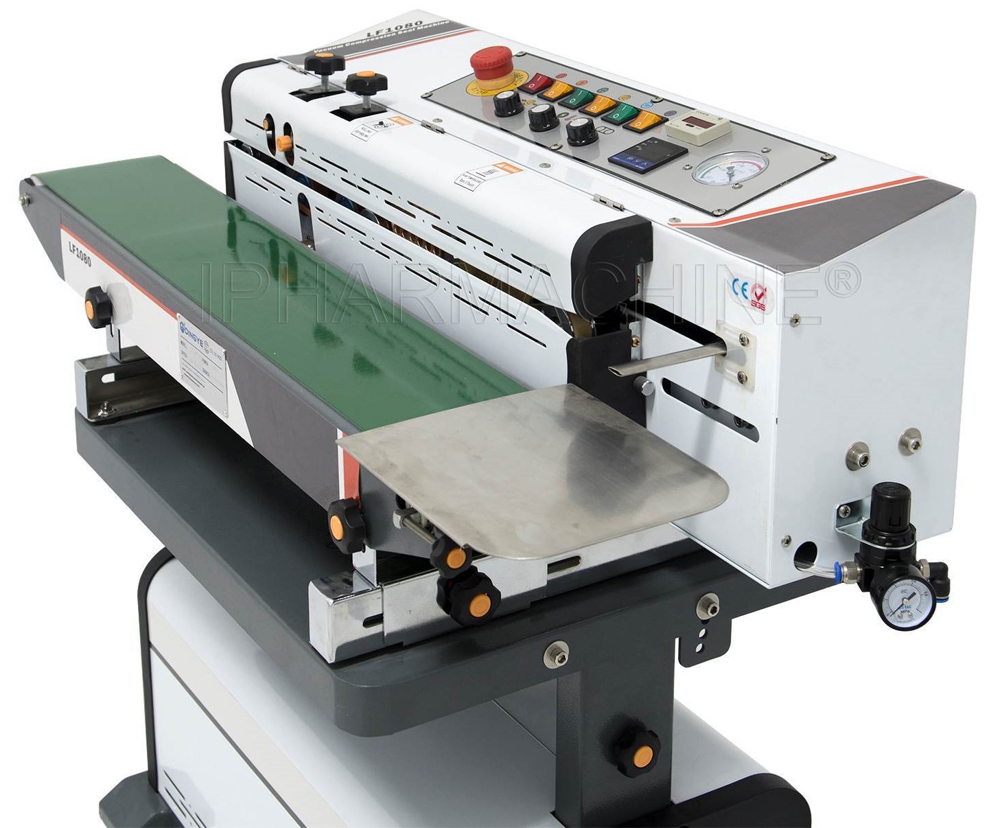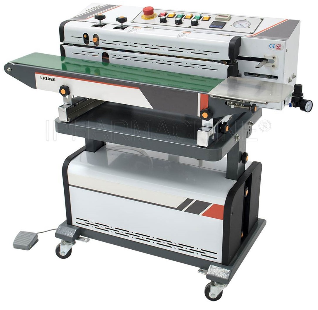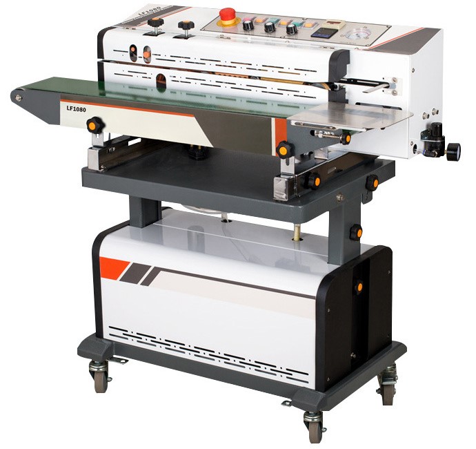 Vacuum & Nitrogen type Band Sealing Machine with Printing Model BSM-1080-V for vacuuming &sealing small bags or filled pouches of tea, snacks, etc. of all materials. It is designed to Vacuum, Gas-Flush (such as nitrogen or other gases), Seal and Code in one continuous sealing and packing machine. It has a Variable speed conveyor carrying the filled pouches in the Roller Bands that heat seal the pouch, move them forward & release them at the other end. No operator handling is required, thus making the sealing process very easy & fast. Embossing of Exp. Dt., etc. also takes place simultaneously if required. This sealer is suitable for Chips / Wafer, snacks, biscuits, etc.